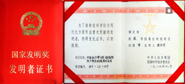 張書(shū)芳老先生是中國(guó)著名遺傳學(xué)育種專家、國(guó)家級(jí)有突出貢獻(xiàn)專家、全國(guó)勞動(dòng)模范、首批享受國(guó)務(wù)院特殊津貼、首批政府特別獎(jiǎng)獲得者。在他主持的大紅蘿卜、大白菜遺傳育種工作的近五十年中,取得重大科研成果13項(xiàng),兩次榮獲“國(guó)家發(fā)明二等獎(jiǎng)”(十幾年中一等獎(jiǎng)一直空缺),填補(bǔ)了兩項(xiàng)世界科技空白,一次榮獲農(nóng)業(yè)部科技進(jìn)步一等獎(jiǎng)。